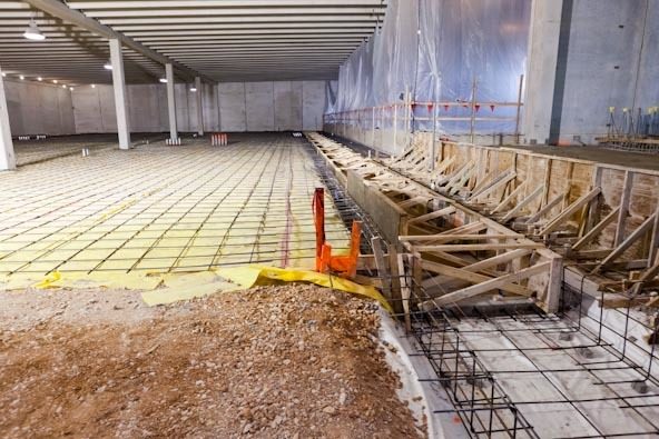 Another view of the wood forms used in building the trench for the chilled water pipes.